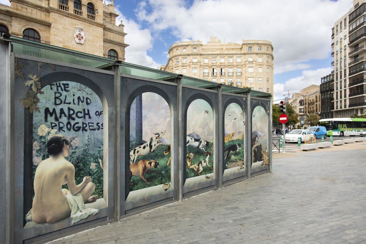 Por otro, la realización de proyectos site-specific como el nuevo Kiosko cómic en plaza Santa Cruz por Sofía Navarrete y la colaboración del colectivo TuttiFrutti, el azulejado del dúo artístico Los Bravú en el Atrio de San Felipe Neri y la pieza The Blind March del brasileño Eduardo Recife frente a la Academia de Caballería; y, por último, las nuevas creaciones murales que llenan de color la calle Recondo por Jorge Peligro e Isa Bolita, la calle Cebadería por Sara Marcos, la calle Cardenal Torquemada por J. Demsky y, aún en curso, la calle Portillo de Balboa por la francesa Miss Van.