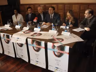 El alcalde de Palencia, Alfonso Polanco, acompañado de la diputada de Cultura, Carmen Fernández; el delegado de la Junta, Luis Domingo González; el vicerrector de la Universidad de Valladolid (UVA), Pedro Caballero; el coordinador de la Muestra, Fernando Méndez, y Tulami Nascimento, representante de Favelacult Gestión Cultural, ha presentado este edición que contará como escenarios con el Auditorio de Caja España-Duero, la Fundación Díaz Caneja, la Biblioteca Pública de Palencia y la Casa Junco.