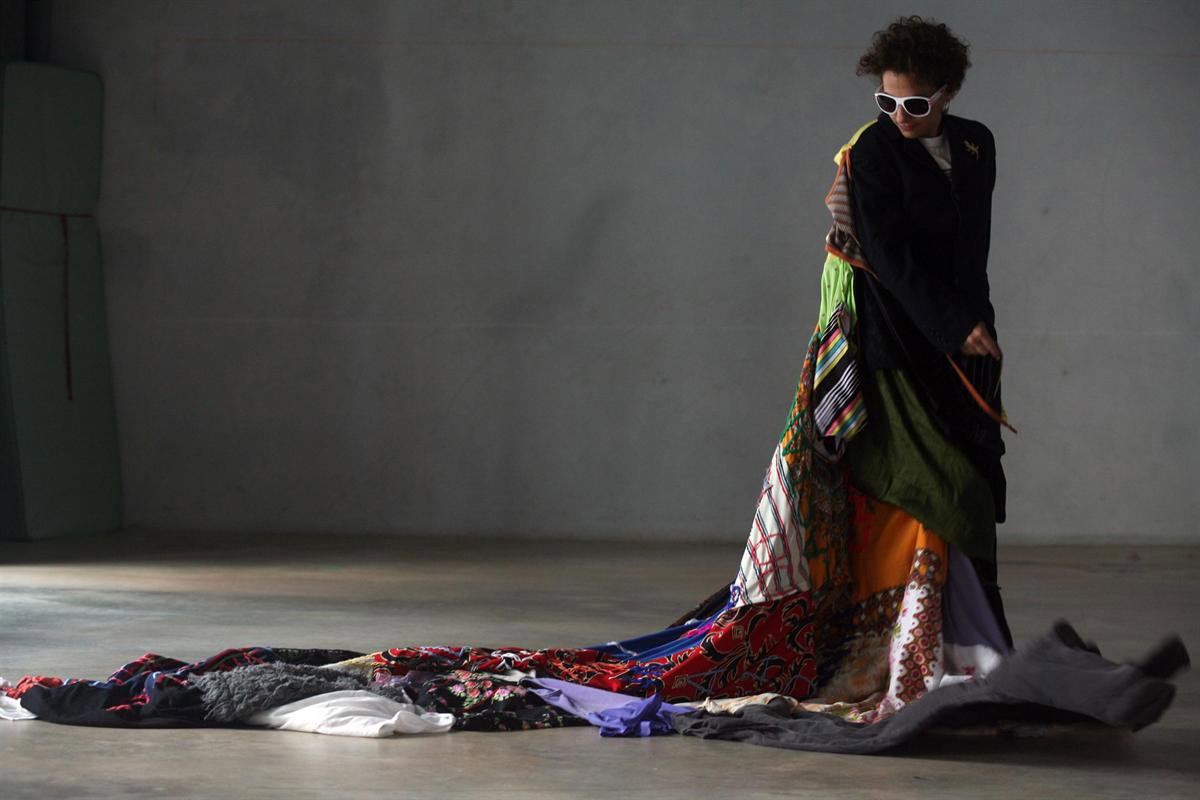 Las prendas que se muestran en la exposición son parte de la colección primavera-verano 2011, período correspondiente a las fechas que se la exposición. El tema de esta colección son papeles de trabajo; cuadrículas, planas, isométricos. Las telas son soportes textiles para que las artesanas o colaboradoras dibujen o escriban sobre ellas.