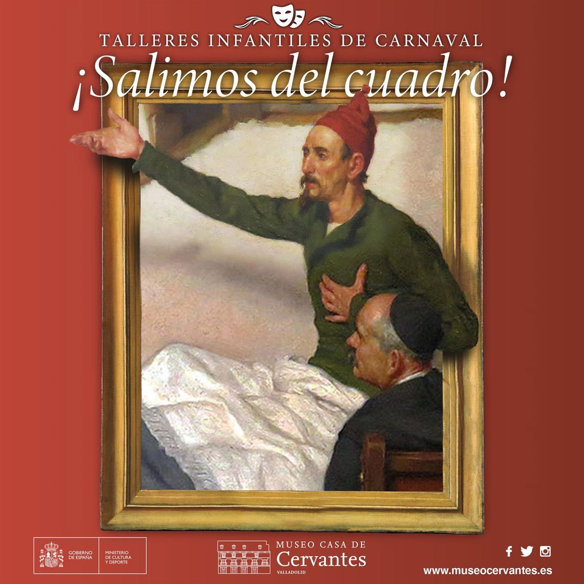 Con motivo de la semana de Carnaval, el Museo Casa de Cervantes de Valladolid ha organizado para el lunes 28 de febrero el taller infantil '¡Salimos del cuadro!', en el que se desarrollará la creatividad de los participantes a través de la creación de máscaras, se jugará con la interpretación y el movimiento del cuerpo, se conocerá la vivienda donde vivió el ilustre escritor del Quijote y se pondrán en valor las actitudes de los personajes de las principales obras pictóricas de la colección.