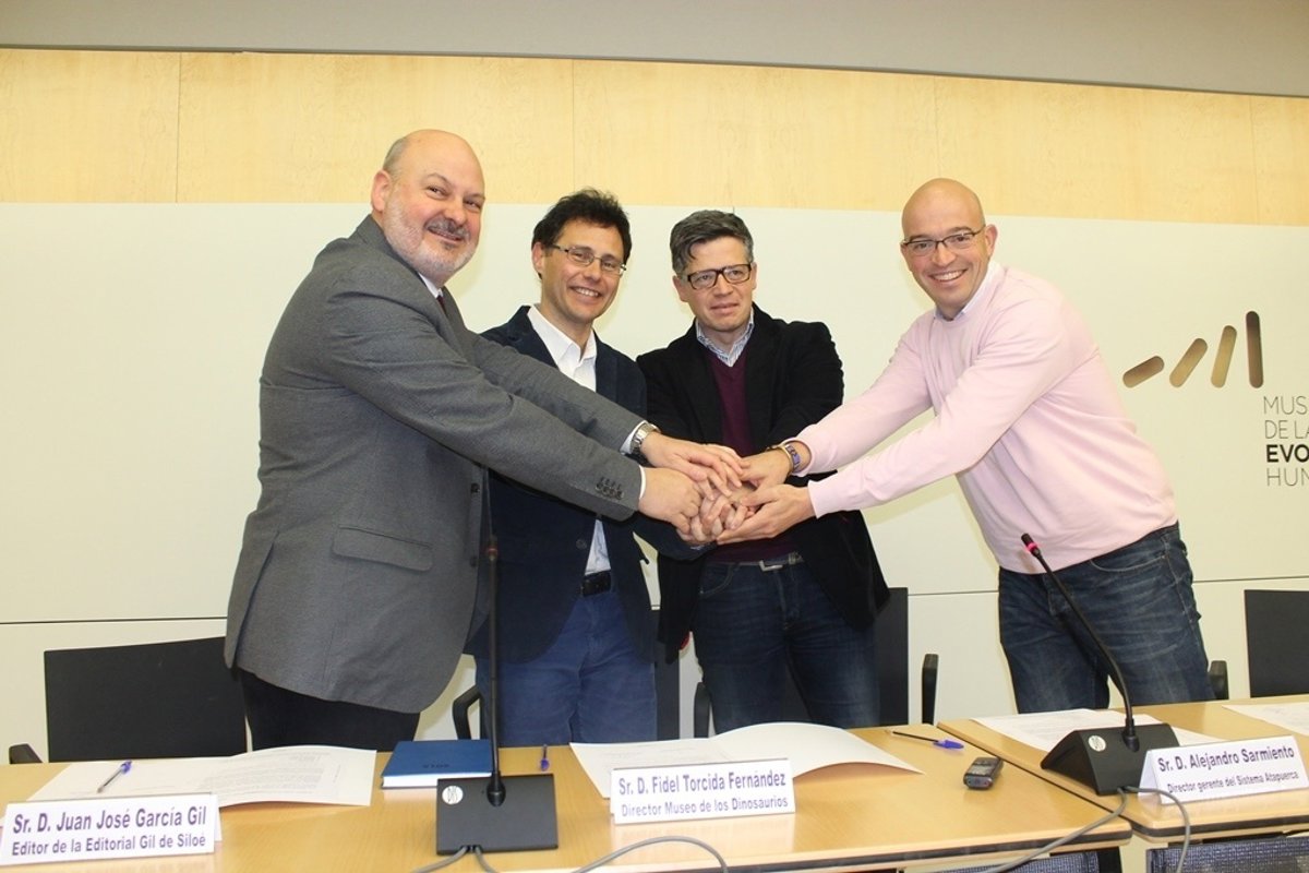 El director gerente del Sisetma Atapuerca, Alejandro Sarmiento, ha firmado este miércoles varios acuerdos con los representantes del Museo de los Dinosaurios de Salas de los Infantes, del Museo del Libro Fadrique de Basilea y del Museo Internacional de Radiotransmisión Inocencio Bocanegra para la promoción conjunta de sus instalaciones y favorecer la cesión de fondos de sus respectivas colecciones.