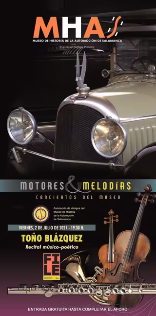 El Museo de Historia de la Automoción de Salamanca (MHAS) acogerá el viernes 2 de julio, a las 19.30 horas, un recital de música y poesía, una iniciativa enmarcada dentro de las actividades anuales del museo e incluida en el programa oficial del Festival Internacional de Literatura en Español de Castilla y León.