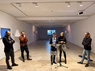 A la presentación han asistido la concejala de Cultura y Turismo, Ana María Redondo, los artistas Jonás Fadrique, Anto Milotta y Zlatolin Donchev, y el comisario de la muestra, Juan Carlos Quindós.