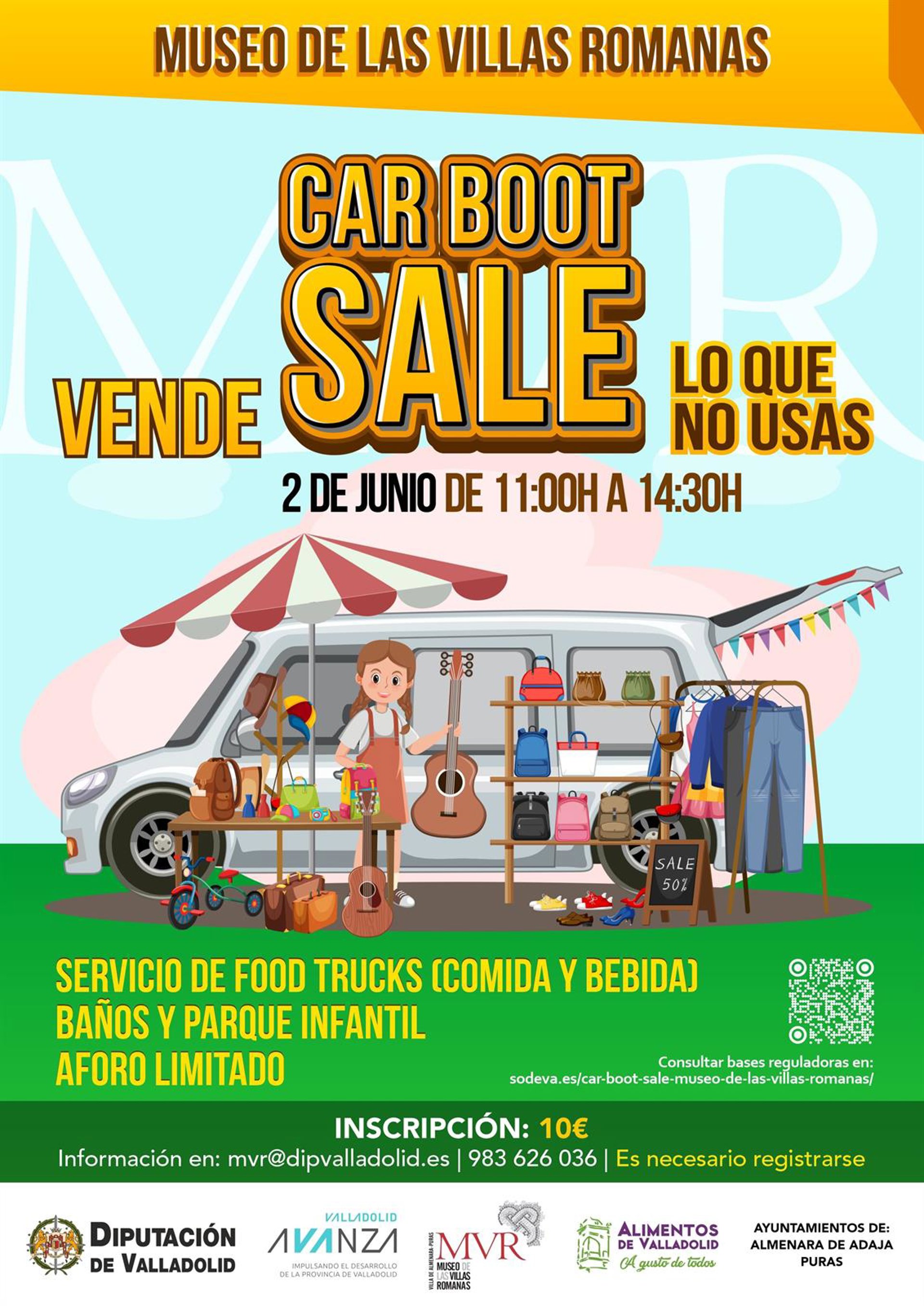 El Museo de las Villas Romanas, ubicado entre Almenara y Puras, acoge la primera edición del Car Boot Sale 'Vende lo que nos usas' organizado por la Diputación de Valladolid y que tendrá lugar el próximo domingo, 2 de junio, de 11:00 a 14:30 horas y contará con un servicio de food trucks de comida y bebida, baños y parque infantil.