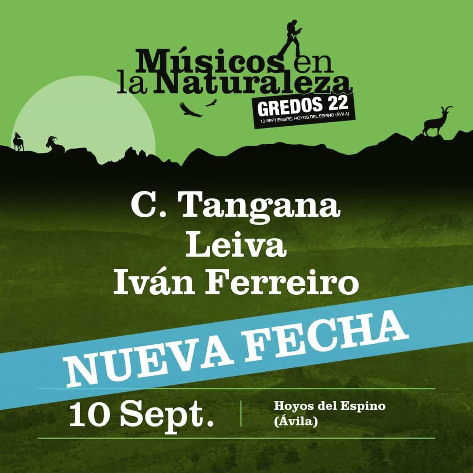La decimoquinta edición de Músicos en la Naturaleza, que se iba celebrar el pasado día 23 de julio y que fue cancelada unos días antes por el riesgo de incendios forestales, se celebrará el sábado 10 de septiembre en la localidad abulense de Hoyos del Espino con el mismo cartel previsto, C. Tangana, Leiva e Iván Ferreiro en un concierto que contará con los dos escenarios previstos y más de cinco horas de música.