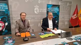 El vicepresidente de la Diputación de León, Roberto Aller (derecha), presenta las I Jornadas Gastronómicas de los Productos de León junto a uno de los organizadorres de la iniciativa, Juan Carlos Flecha. - EUROPA PRESS