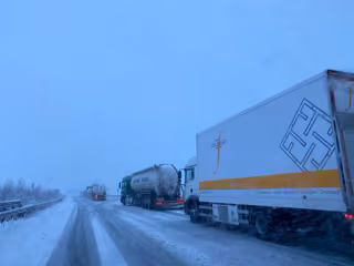 Camiones parados en los accesos a Burgos por la nieve. - EUROPA PRESS