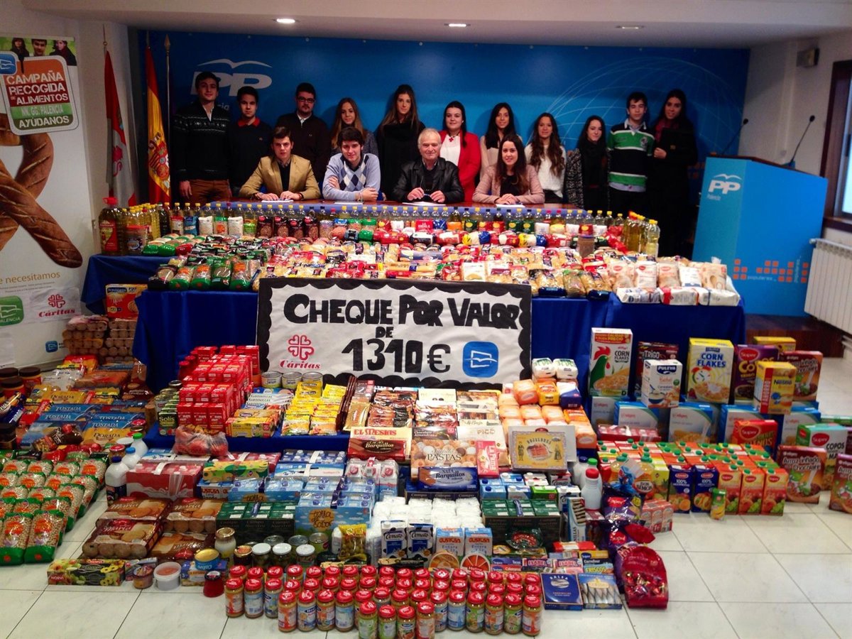 Nuevas Generaciones de Palencia ha entregado este lunes los 800 kilogramos y 1.310 euros obtenidos durante la pasada semana en la campaña que llevaron a cabo en la calle Mayor de la capital palentina, donde se situaron para recoger alimentos y donaciones, junto con otros 160 kilos aportados directamente por la organización, que se comprometió a donar un kilo por cada cinco recogidos, según han señalado fuentes de NN.GG. en un comunicado recogido por Europa Press.