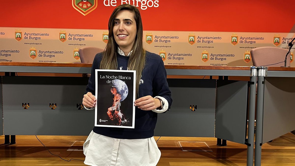 La concejala de Cultura, Andrea Ballesteros, enseña el cartel de la Noche Blanca. - EUROPA PRESS
