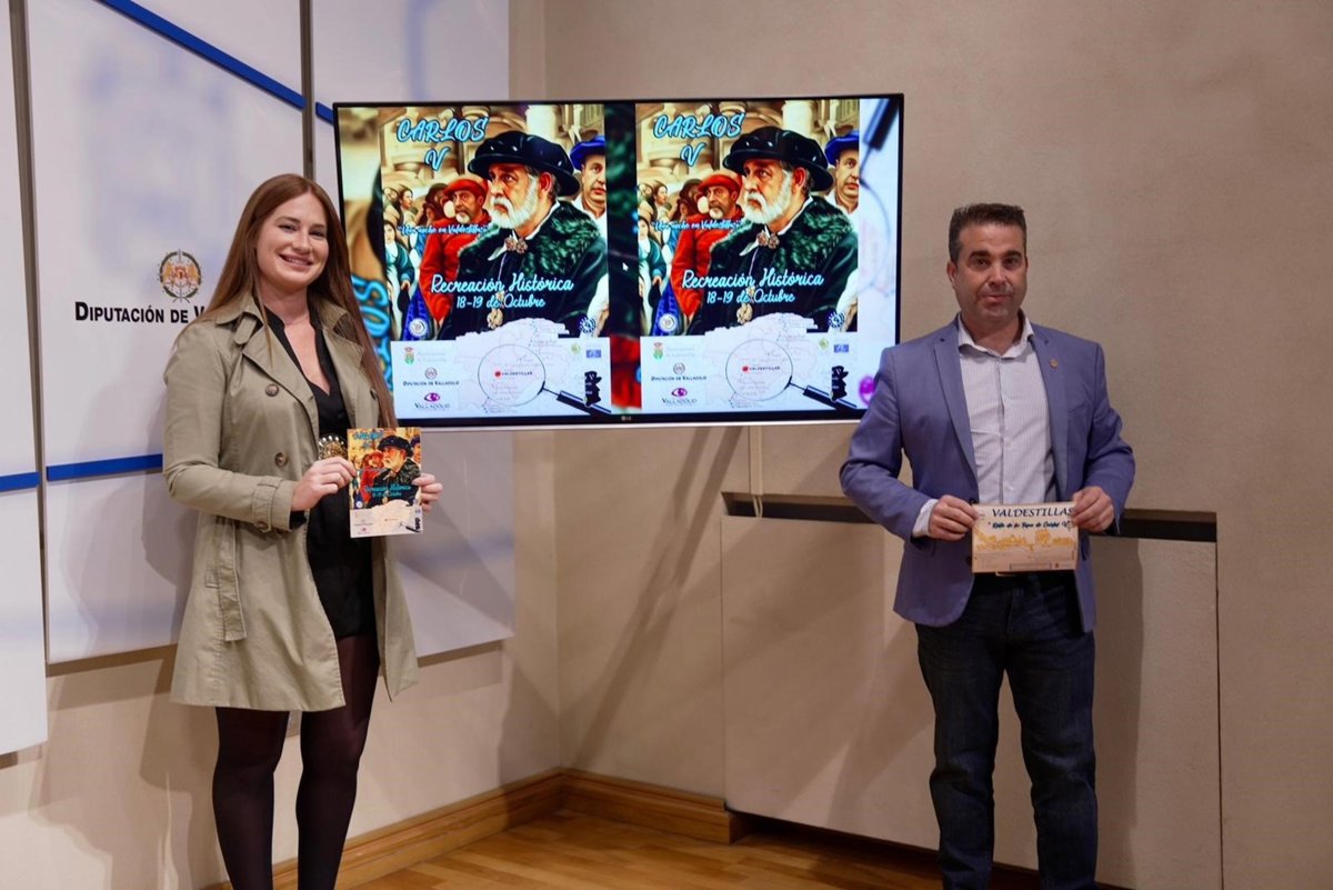 La diputada de Educación y Cultura, Yolanda Burgoa, y el alcalde de Valdestillas, Alberto Sanz, en la presentación de 'Carlos V, Una noche en Valdestillas' , - DIPUTACIÓN DE VALLADOLID