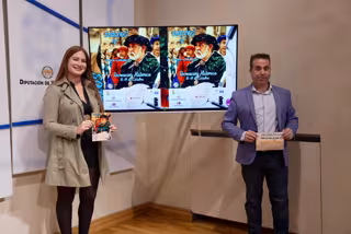 La diputada de Educación y Cultura, Yolanda Burgoa, junto al alcalde de Valdestillas, Alberto Sanz, han presentado esta recreación histórica en el salón de Recepciones del Palacio Pimentel de Valladolid.