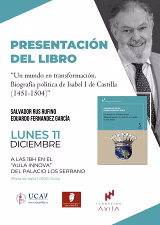 La Cátedra de Isabel la Católica de la Universidad Católica de Ávila (UCAV), en colaboración con Fundación Ávila, presenta el lunes, 11 de diciembre, el libro Un mundo en transformación. Biografía política de Isabel I de Castilla (1451-1504).