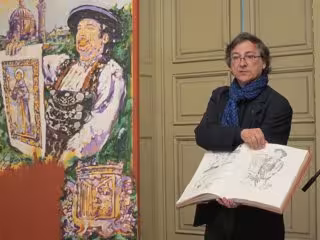 Esta creación, en la que se anuncian los festejos en torno al 12 de junio, cuenta con el folclorista Gabriel Calvo como imagen del charro y trata de ser "un homenaje al ciudadano de Salamanca", ha explicado su autor en la presentación de la obra, quien ha estado acompañado por el alcalde de la ciudad, Alfonso Fernández Mañueco, y el concejal de Cultura, Julio López, entre otros representantes institucionales.