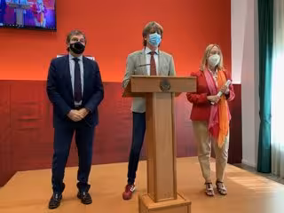El alcalde de Soria, Carlos Martínez, la directora general de Fomento de la Junta, Jesús Puerta, y la directora general de Acuaes (Sociedad Estatal Aguas de las Cuencas de España, S.A), Rosa Cobo, han informado de los asuntos abordados en la comisión de seguimiento celebrada este lunes.