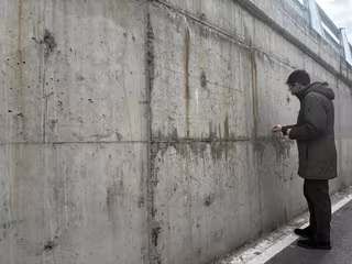 Archivo - El portavoz socialista Pedro Herrero mide una de las grietas en el viaducto del Arco de Ladrillo. - EUROPA PRESS - Archivo