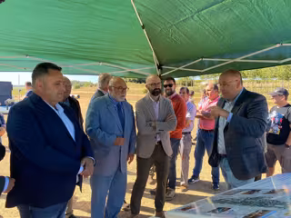 El presidente de SEIASA, Francisco Rodríguez Mulero, y el subdelegado del Gobierno en León, Héctor Alaiz, junto a las comunidades de regantes en su visita a las obras - MINISTERIO DE AGRICULTURA