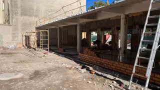 Hasta el momento, se ha completado la demolición del interior, la fachada posterior y la cubierta; se han levantado muros y distribuciones interiores; se ha colocado la impermeabilización y el aislamiento de la cubierta están finalizados los trabajos de saneamiento.