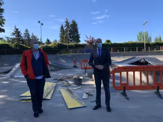El alcalde, José Antonio Diez, acompañado por el concejal de Régimen Interior, Movilidad, Deportes y Nuevas Tecnologías, Vicente Canuria, y por técnicos municipales, ha visitado las obras de remodelación de las pistas de 'Skate Park' del Paseo de Papalaguinda que avanzan "a buen ritmo".