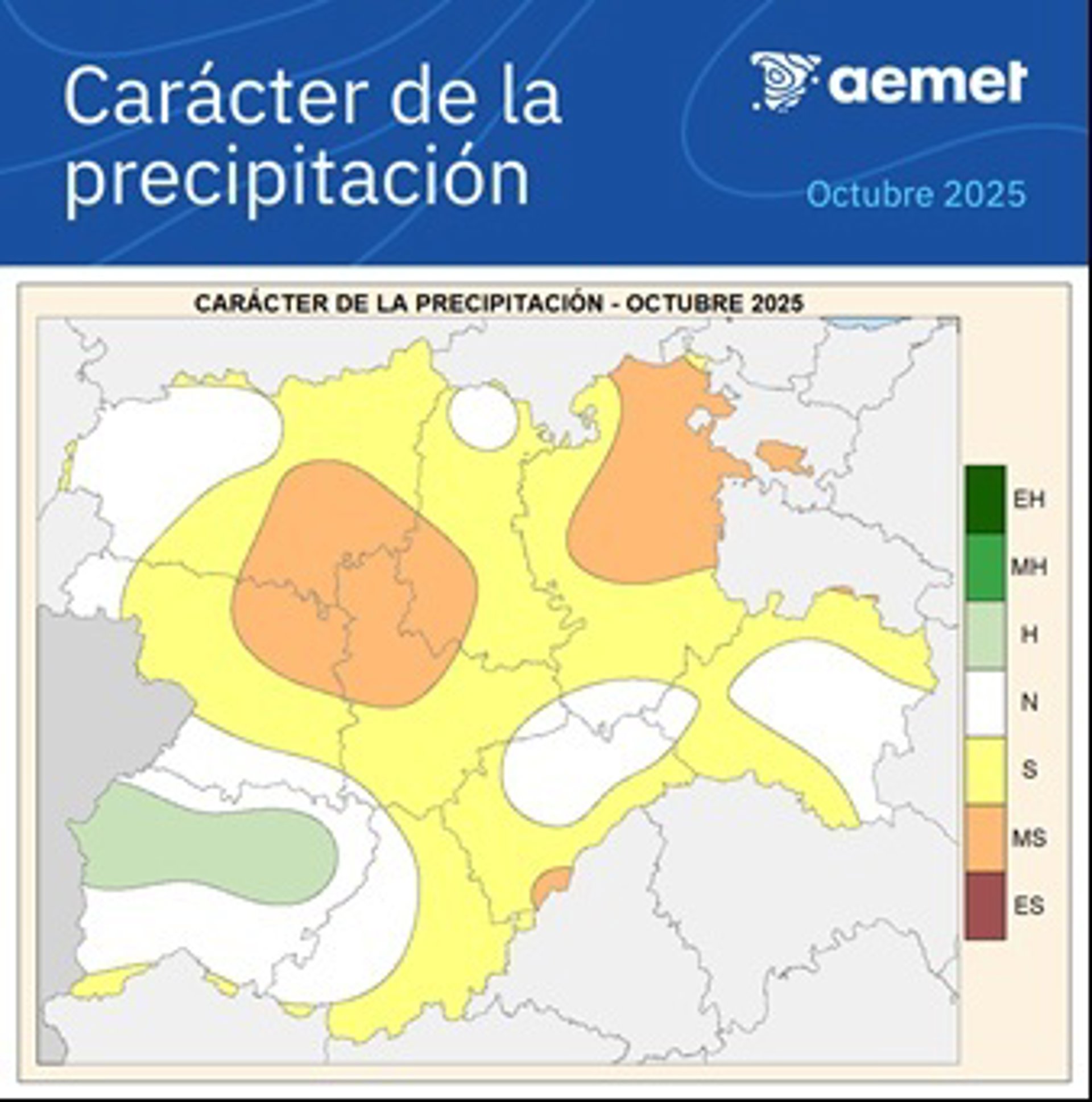 En cuanto a la pluviometría, octubre de 2025 fue un mes "muy seco" ya que registró un déficit de precipitaciones del 44 por ciento respecto al valor medio.