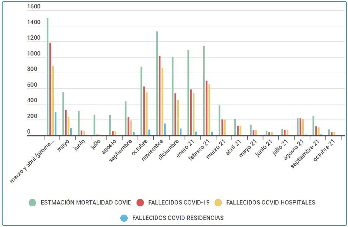 Octubre deja un balance acumulado desde el inicio de la pandemia de 7.376 fallecidos en hospitales y residencias, de los cuales 6.206 perdieron la vida en centros hospitalarios y 1.170 en las residencias de mayores o personas con discapacidad.
