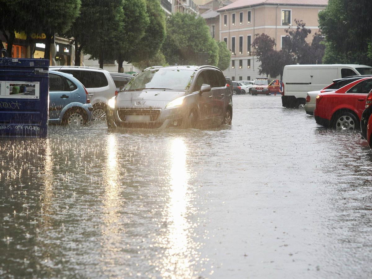 Un coche circula por una calle inundada este martes 3 de junio en Valladolid capital. - Photogenic/Pablo Requejo - Europa Press