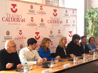 La concejala de Educación y Cultura Irene Carvajal, la viceconsejera de Acción Cultural de la Junta de Castilla y León, Mar Sancho, el Director del teatro, José María Esbec, acompañados por el director musical Nimrod David Pfeffer, el director de escena, Joan Anton Rechi, el director del Coro Calderón Lírico, Sergio Domínguez, y la directora del Coro Voces Blancas de Valladolid, han presentado este viernes el doble programa lírico.