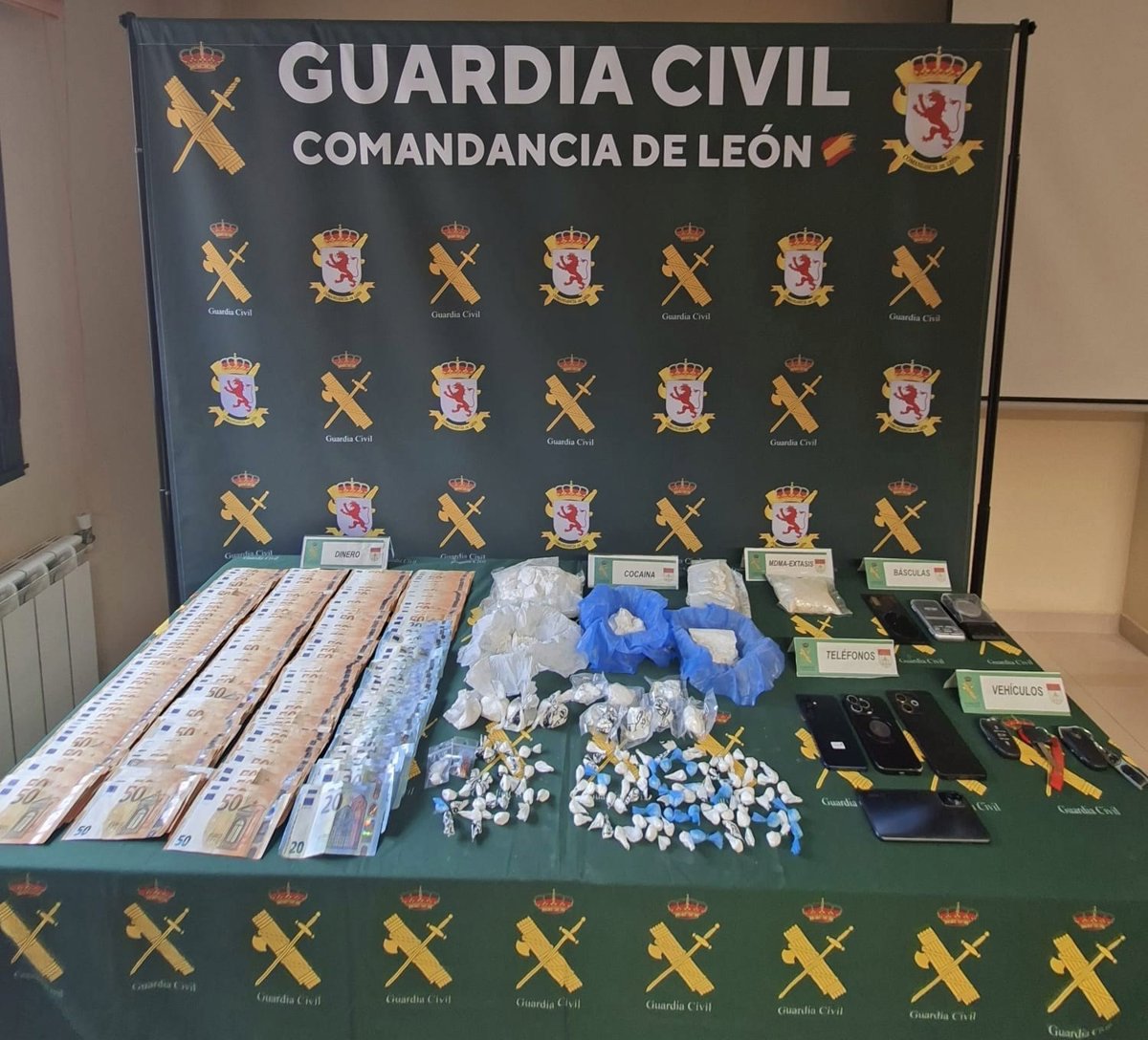 La Guardia Civil de León ha detenido a un hombre y una mujer en el marco de la operación 'Dornajo' que se ha saldado con el desmantelamiento de dos puntos de venta de sustancias estupefacientes y la aprehensión de 1.380 gramos de cocaína y 210 de MDMA, así como 18.000 euros en efectivo, teléfonos móviles y tarjetas de telefonía.