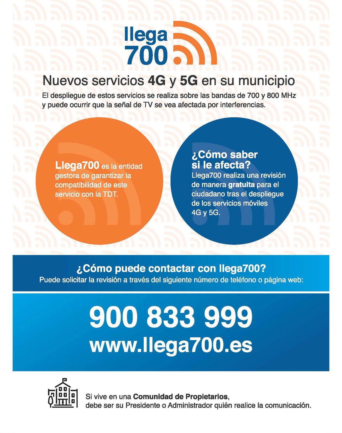 Para garantizar la compatibilidad de la nueva tecnología con la televisión digital terrestre (TDT), Llega700 es la entidad puesta en marcha por los operadores para solucionar cualquier afectación en la recepción de la señal de televisión, según ha explicado el Ayuntamiento a través de un comunicado recogido por Europa Press.