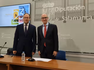 El presidente de la Diputación de Salamanca, Javier Iglesias, acompañado del delegado del área de Economía, Marcos Iglesias, ha presentado este viernes la memoria de actividades y resultados del organismo, que terminó el ejercicio 2023 con "los mejores resultados de recaudación obtenidos por la Diputación en España".