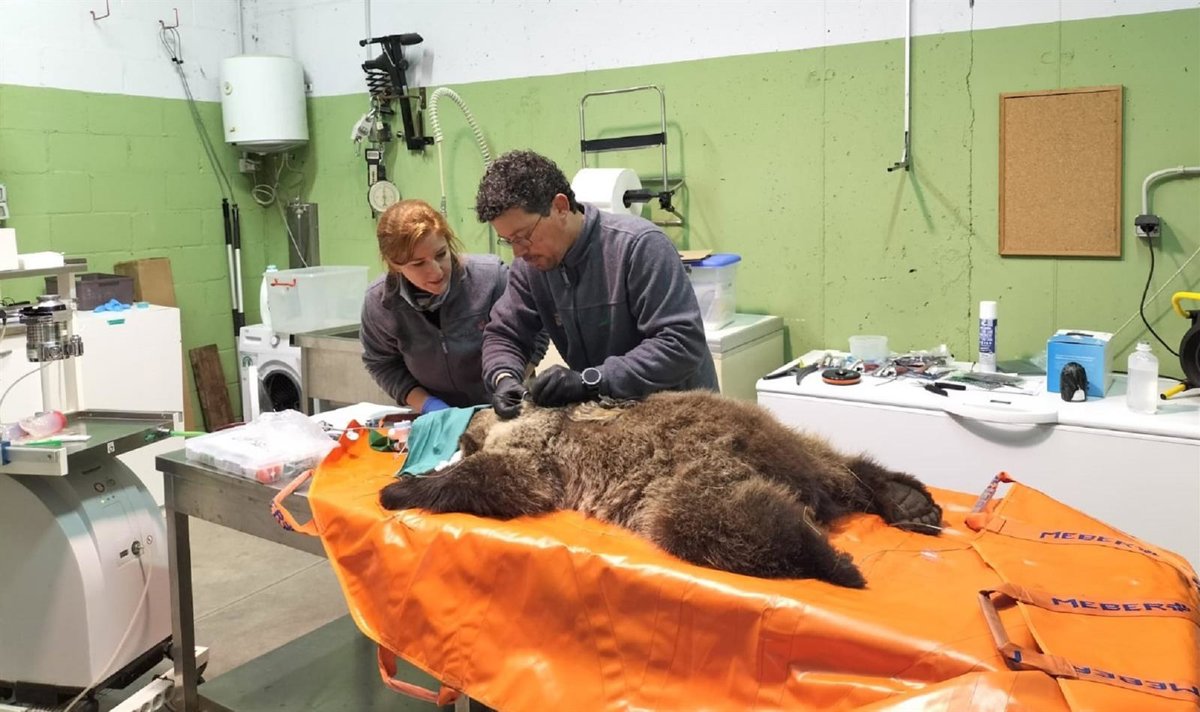 El equipo veterinario realiza la intervención al osezno recuperado en León. - JCYL