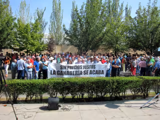 'Sin precios justos la ganadería se acaba' es el lema de la pancarta tras la cual se han apostado más de doscientos participantes en esta movilización convocada por Asaja y la Unión de Campesinos (UCCL) con el propósito de poner voz a la "situación dramática, límite" por la que atraviesa un sector que lleva desde 2015 soportando precios por debajo de los costes de producción y que está abocado a su desaparición, dejando en la calle a cerca de diez mil personas, de ellas cinco mil de forma directa que trabajan en 2.250 explotaciones ganaderas.