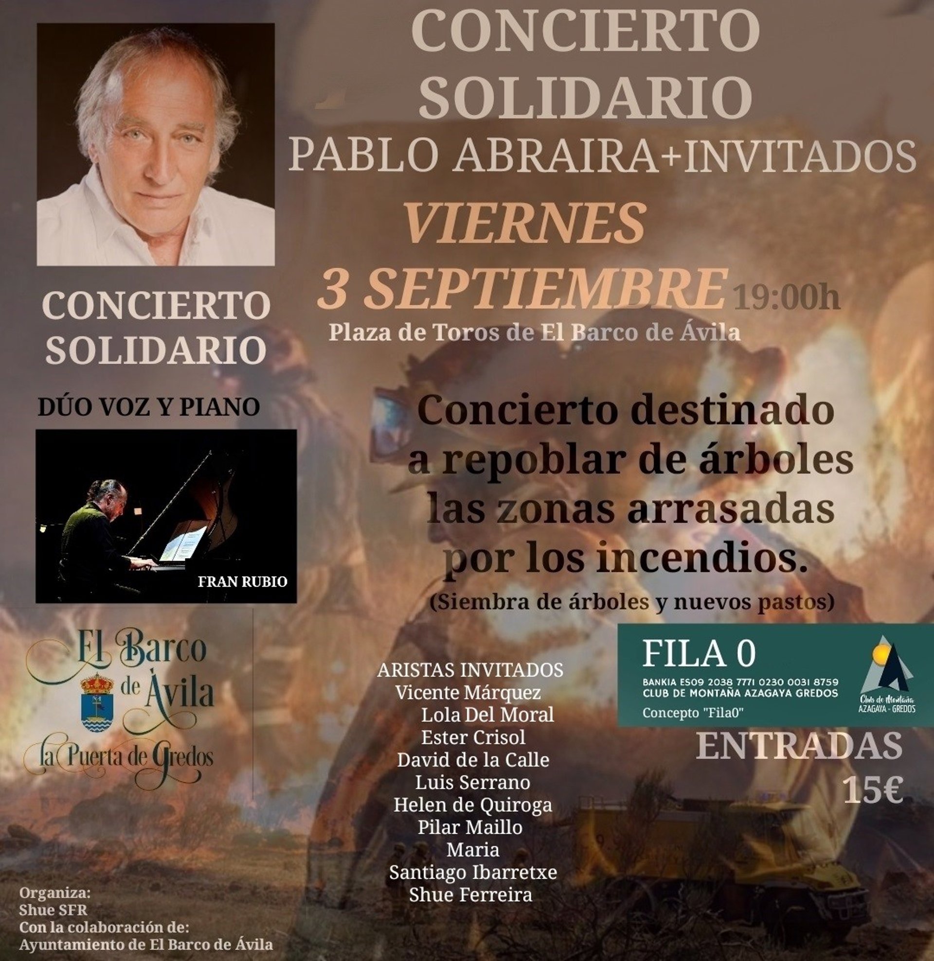 El cantante Pablo Abraira encabeza el cartel de un concierto solidario que se celebrará en El Barco de Ávila (Ávila) para la repoblación de las zonas arrasadas por los incendios de Ávila.
