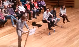 El auditorio, en el que podían verse banderas republicanas y alguna del reino de León, así como caretas con el rostro de Pablo Iglesias e Íñigo Errejón, se ha quedado pequeño ante la cantidad de personas que han acudido, muchas de la cuales han tenido que permanecer fuera después de que una hora antes de la apertura de las puertas ya estuvieran haciendo cola.