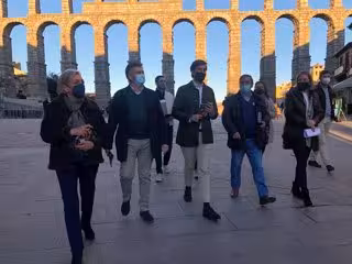 El vicesecretario de Comunicación del Partido Popular a nivel nacional, Pablo Montesinos, junto a la candidatura del PP de Segovia. - PP