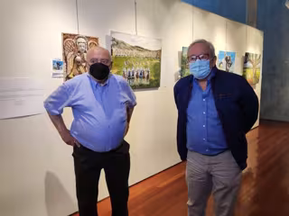 Paco Ballesteros (izda) y Jesús Bárez inauguran la exposición 'Soria, soñando caminos'. - EUROPA PRESS