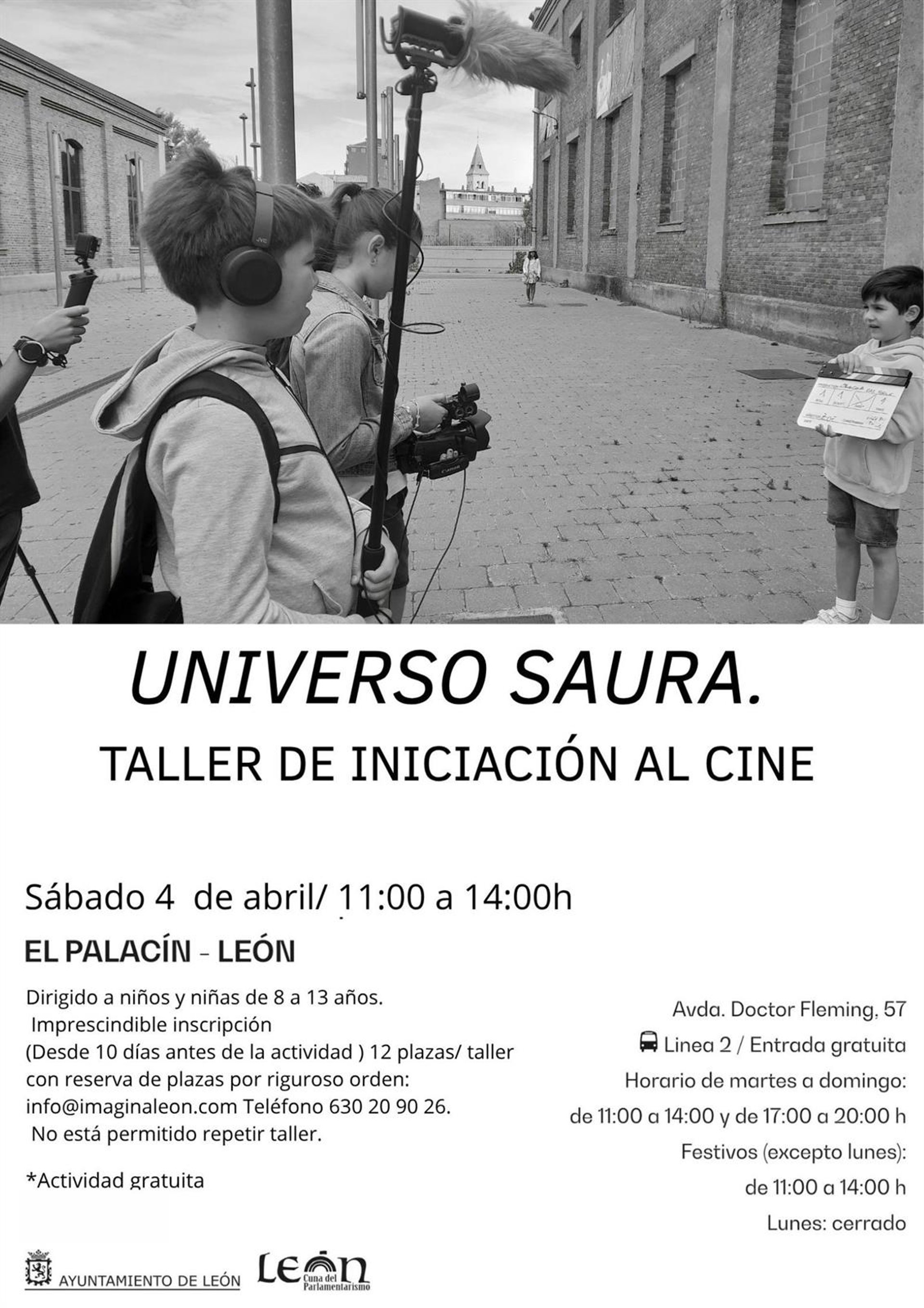 Los participantes podrán aprender a rodar una película con cámara de fotos y animación. Se celebrará entre las 11.00 y las 14.00 horas. Para participar es imprescindible inscripción a través del correo electrónico info@imaginaleon.com o en el teléfono 630209026. La reserva de plaza se hará por orden de inscripción.