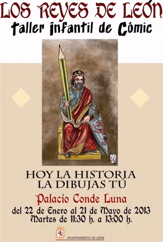 Al finalizar el taller, se realizará una muestra expositiva en el Palacio Conde Luna con una selección de dos obras por clase participante de cada centro escolar, que representen a uno de los monarcas leoneses elegido por el alumno.