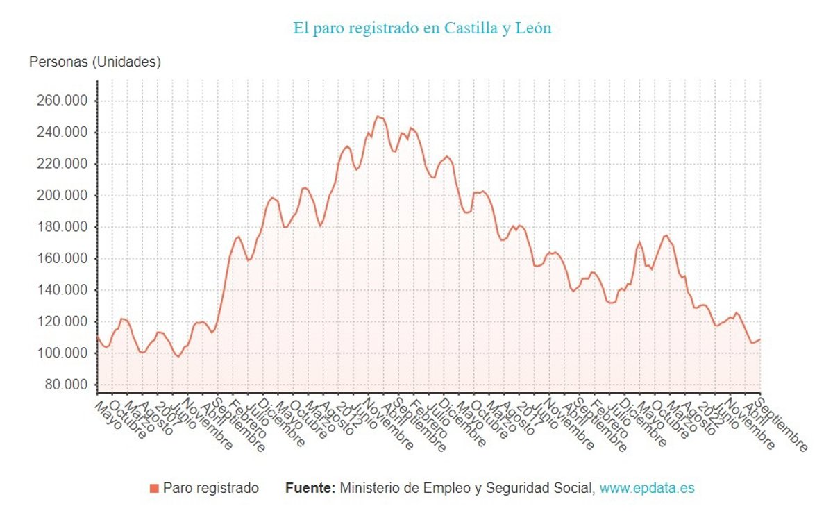 El número de parados inscritos en las oficinas de Empleo de Castilla y León aumentó en 1.186 personas en septiembre y la cifra de desempleados en la Comunidad sigue por debajo de la barrera de los 110.000 y se sitúa, en concreto, en 108.922, según los datos del Ministerio de Trabajo y Economía Social recogidos por Europa Press.