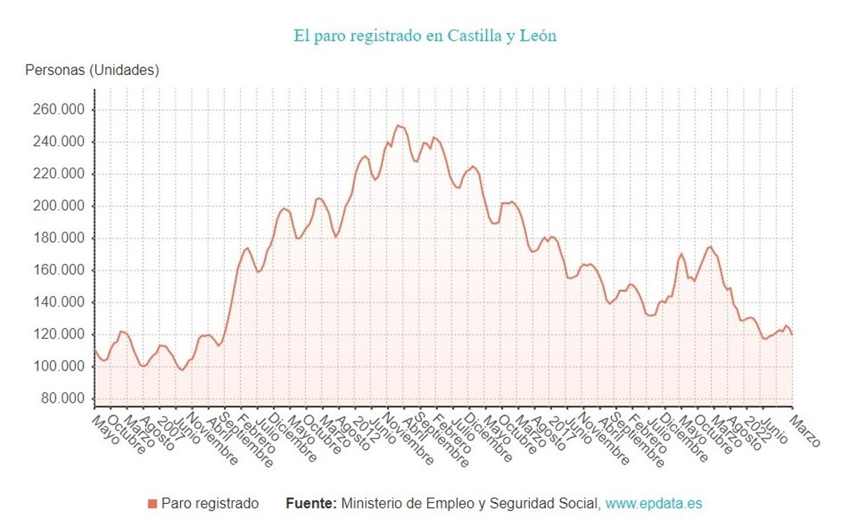 El número de parados inscritos en las oficinas de Empleo de Castilla y León cayó en 4.446 personas en marzo y la cifra de desempleados en la Comunidad baja de la barrera de los 120.000 y se sitúa, en concreto, en 119.646, según los datos del Ministerio de Trabajo y Economía Social recogidos por Europa Press.