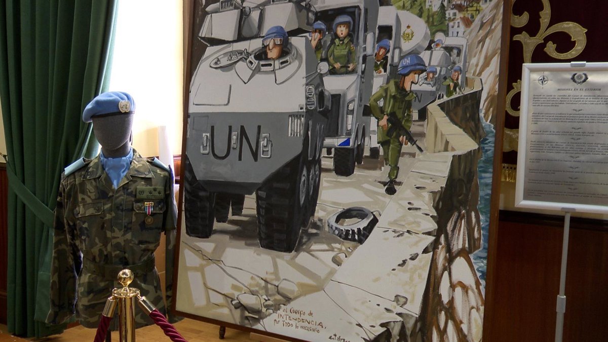 La muestra recoge nueve ilustraciones de gran formato firmadas por el dibujante y humorista gráfico José Manuel Esteban Guijarro, con los textos que explican distintos hitos en la historia del Cuerpo de Intendencia del Ejercito de Tierra, además de estandartes y uniformes, y de un cortometraje de nueve minutos titulado 'El Palacio de Palentinos. Un paseo por la historia de la Intendencia'.
