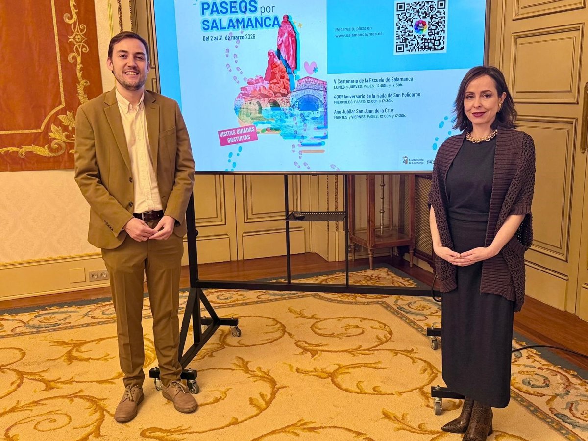La concejala de Relaciones Institucionales, Carmen Seguín, y el concejal de Turismo, Ángel Fernández, han presentado la nueva edición del programa 'Paseos por Salamanca', las visitas guiadas gratuitas en las que se acerca a ciudadanos y visitantes la "riqueza histórica, monumental y humana de la ciudad a través de recorridos especializados con los que poner en valor celebraciones, lugares y personajes clave de la historia salmantina".