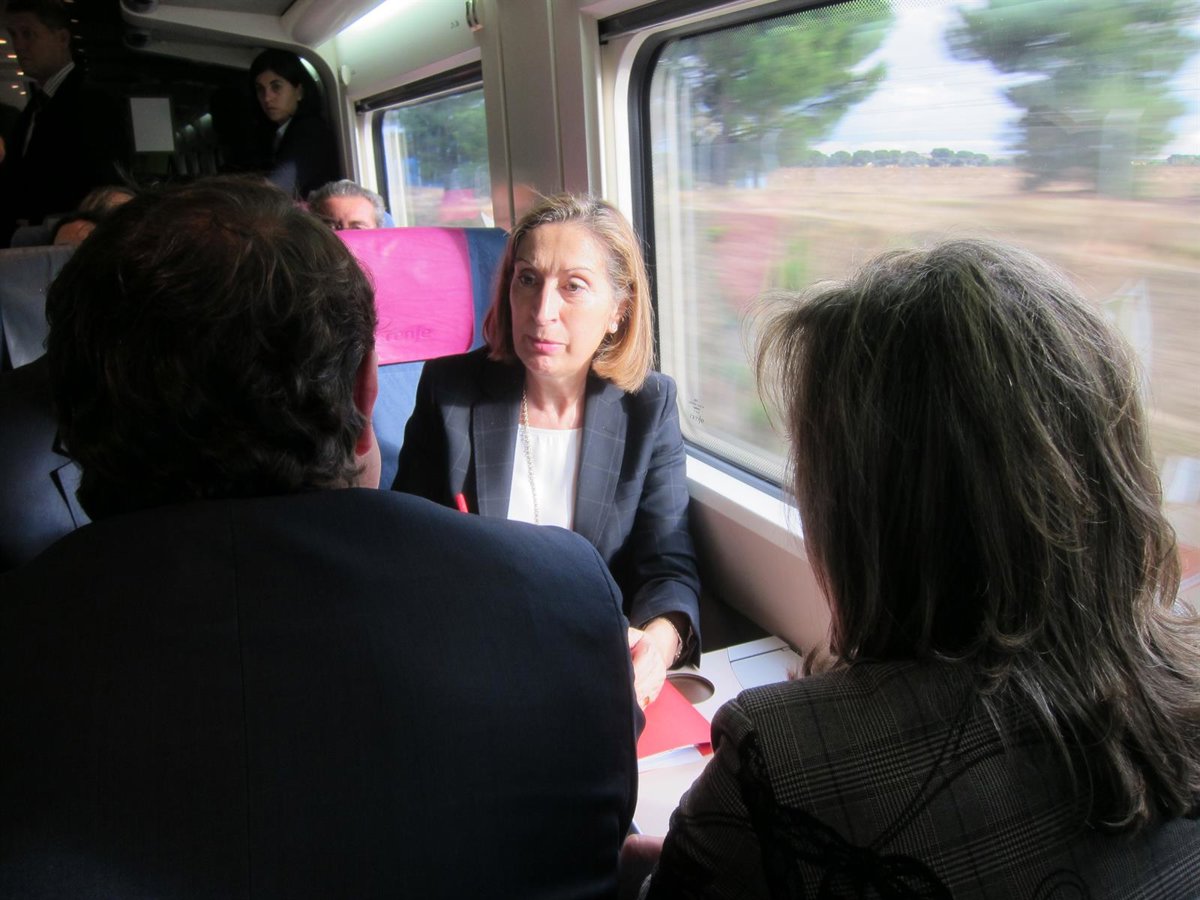 La ministra de Fomento, Ana Pastor, ha hecho estas declaraciones a los medios de comunicación después de haber recorrido, a bordo de un tren de pruebas, el trayecto entre Olmedo, dentro de la nueva Línea de Alta Velocidad Madrid-Galicia, y la línea Medina-Salamanca.