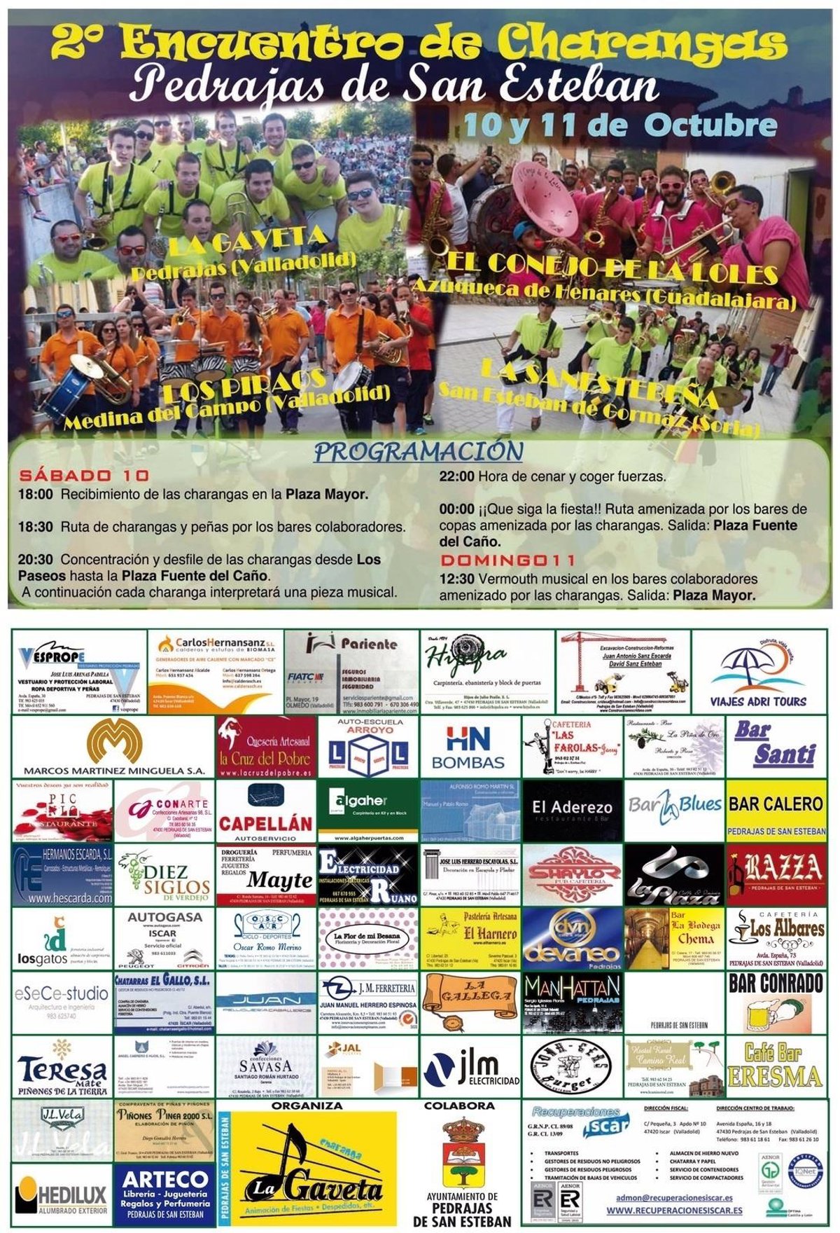 La localidad vallisoletana de Pedrajas de San Esteban celebrará este fin de semana y la fiesta de la Hispanidad con la segunda edición de la concentración de Charangas, en la que participan cinco agrupaciones procedentes de Medina del Campo, Azuqueca de Henares, San Esteban de Gormaz y como anfitriona, la charanga 'La Gaveta' de esta localidad piñonera.