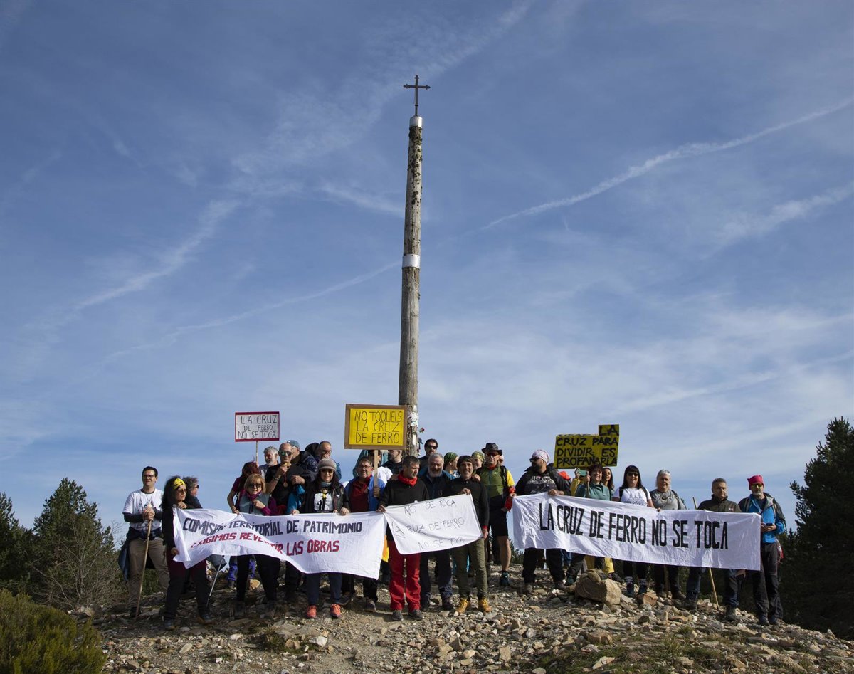 Peregrinos de diferentes comunidades autónomas de España, de Italia y Portugal han protagonizado este domingo una protesta a los pies de la Cruz de Ferro, uno de los símbolos más conocidos del Camino de Santiago, en León, para reivindicar la paralización de la obra y el distanciamiento de la carretera, así como para pedir respeto a las intervenciones que se produzcan en las cercanías.