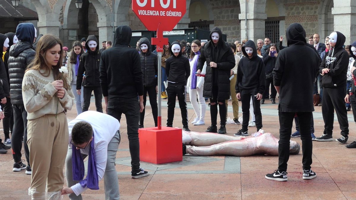 Una performance ha mostrado el rechazo a la violencia de género en el centro de Ávila tras la lectura de un manifiesto por parte del alcalde de la capital abulense, Jesús Manuel Sánchez Cabrera, con motivo de la celebración del Día Internacional por la Eliminación de la Violencia contra la Mujer.