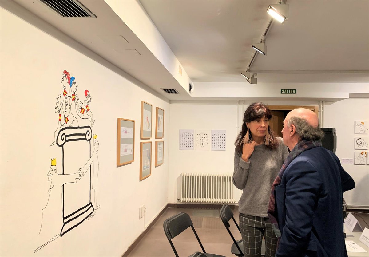Ana Redondo y Peridis charla tras la presentación de la exposición de la obra del humorista gráfico en la sala de exposiciones de la Casa Revilla de Valladolid. - EUROPA PRESS