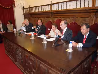Los duques de Soria, la infanta Margarita y Carlos Zurita, han presidido la presentación del libro en el Aula Magna de la UPSA. Ha contado también con la asistencia del rector de la institución académica salmantina, Marceliano Arranz Rodrigo; el presidente de la Fundación Duques de Soria, Rafael Benjumea Cabeza de Vaca, y el consejero de Educación de la Junta de Castilla y León, Juan José Mateos Otero.