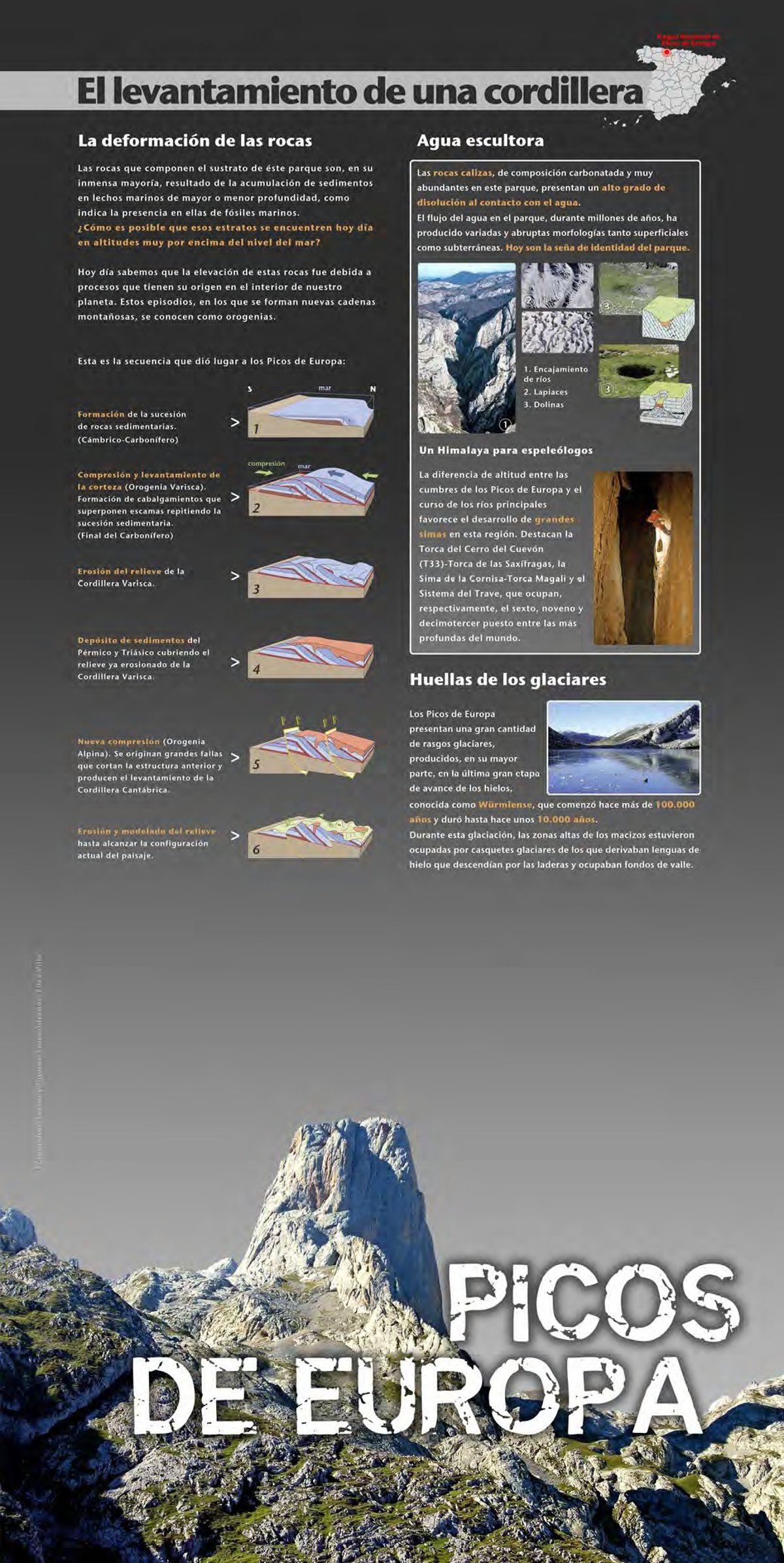 La Exposición 'Guías Geológicas de Parques Nacionales', que se exhibe en el Centro Nacional de Educación Ambiental (Valsaín, Segovia) hasta el 25 de marzo pretende divulgar el rico patrimonio geológico de los Parques Nacionales, entre ellos el de Picos de Europa.
