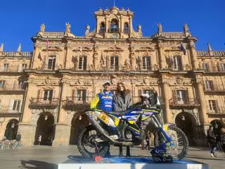 Santolino ha presentado este jueves en la Plaza Mayor de Salamanca, junto a la concejal de Deportes del Ayuntamiento de la ciudad, Almudena Parres, la moto con la que tratará de alcanzar este objetivo que encara con "confianza".