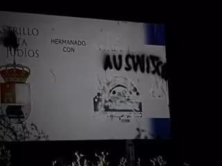 Las pintadas han aparecido en varios puntos de la localidad, como las señales de la carretera y paredes cerca del futuro Centro de la Memoria Sefardí, que está en estos momentos en construcción.